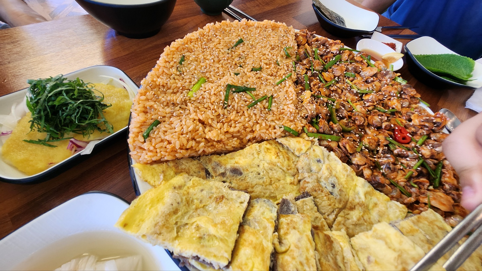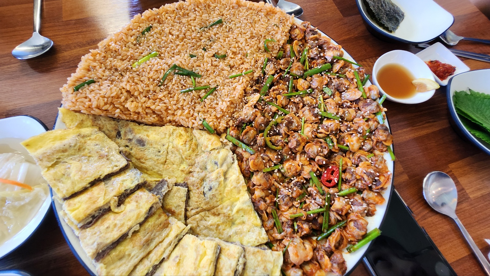 그리고 꼬막무침에 비빔밥을 그릇에 비벼 먹었을 때