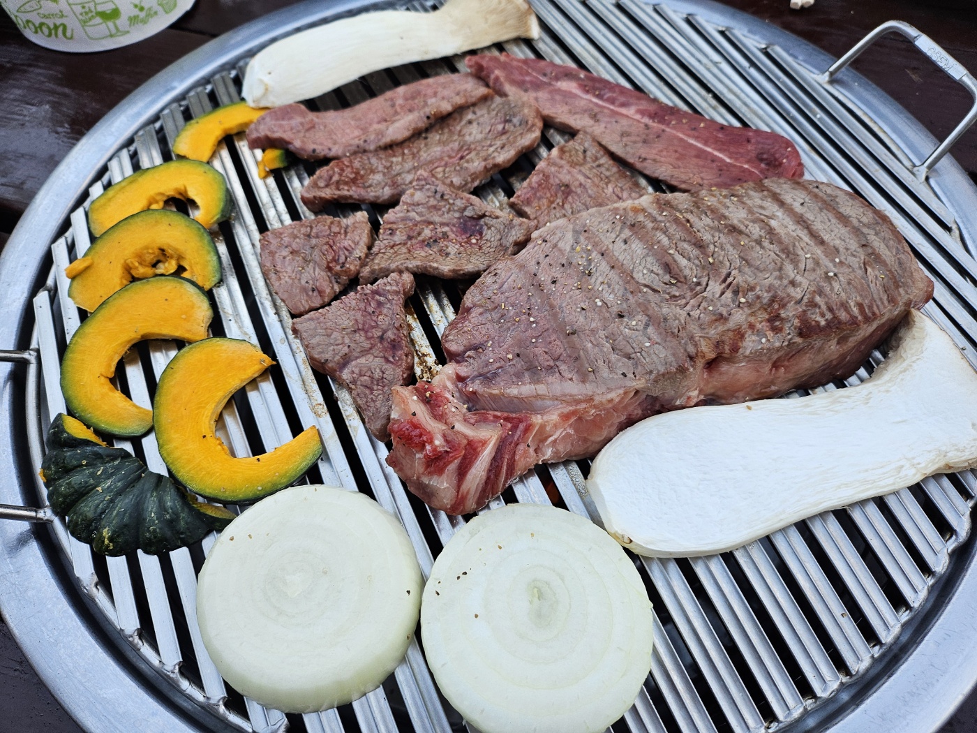 계곡에서 들려오는 물소리를 배경으로 맛있는 저녁을 즐겼습니다.